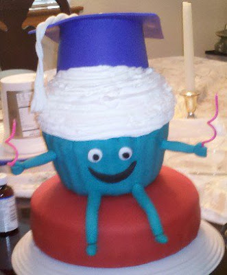 I made this cake for my friend, Katie's graduation party. Don't ask me why I made it blue instead of our school color which is purple because I just don't know. June, 2011.